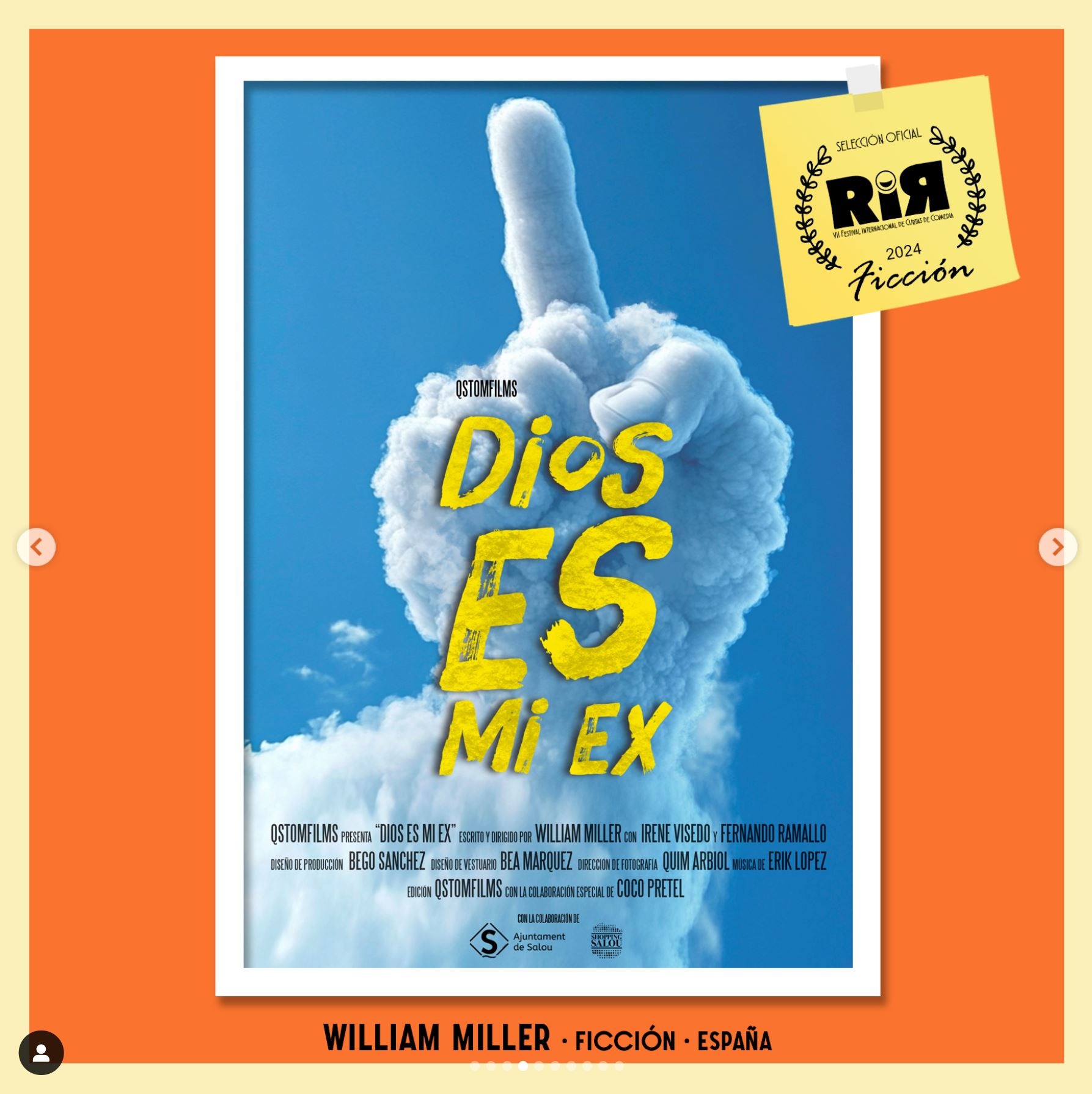 Dios es mi Ex, selecionado en el RIR VII Festival Internacional de Curtas de Comedia que se celebra en Allariz (Ourense) del 1 al 7 de Septiembre