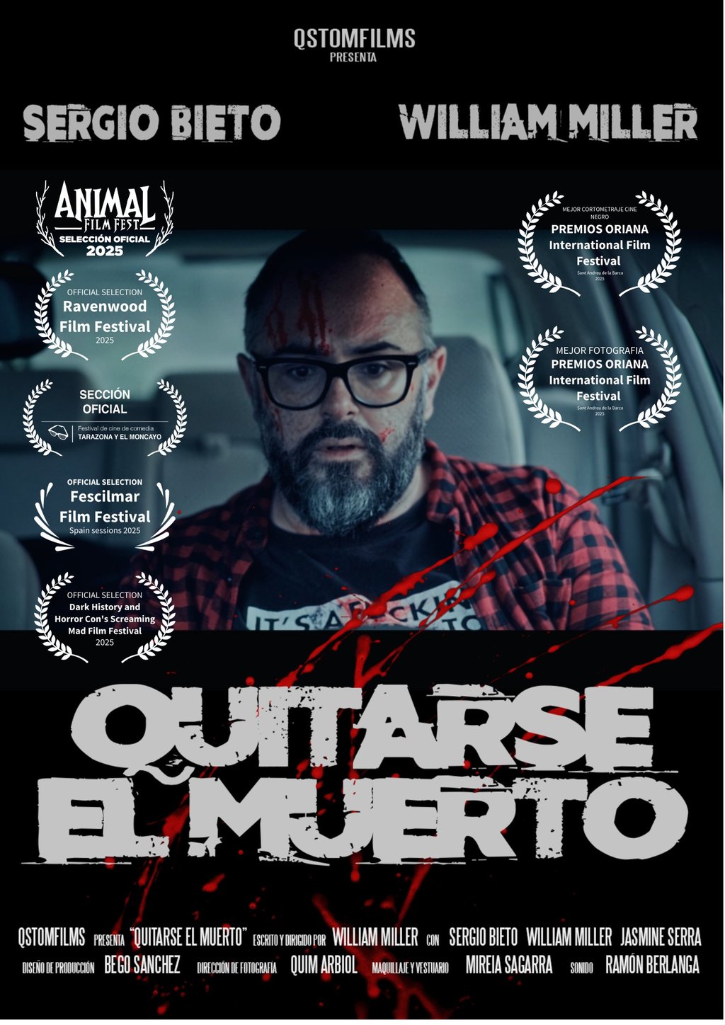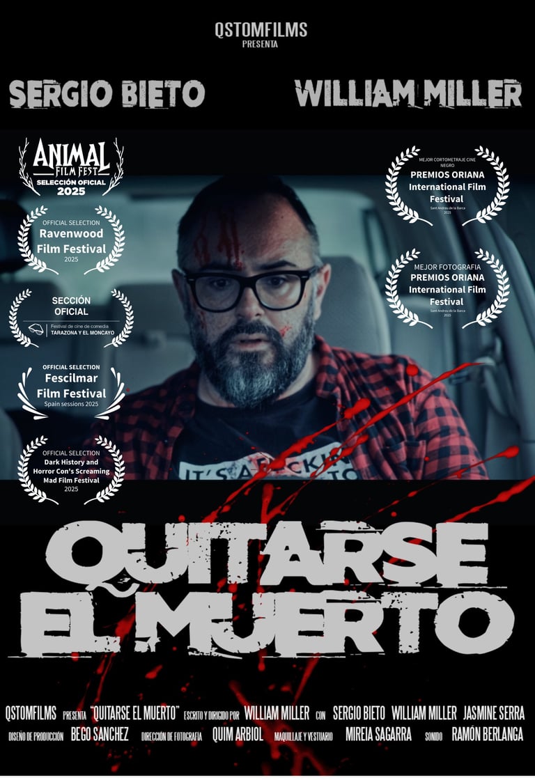 Quitarse El Muerto es un cortometraje escrito y dirigido por William Miller, producido por Qstom Films, e interpretado por Sergio Bieto, William Miller, Bego Sánchez, Alfons Toda, Jasmine Serra y Joaquín Villa. La historia avanza desde una situación cotidiana hacia un territorio cada vez más oscuro, incómodo y moralmente turbio, construyendo la tensión desde los silencios, las decisiones y la conducta de sus personajes.
